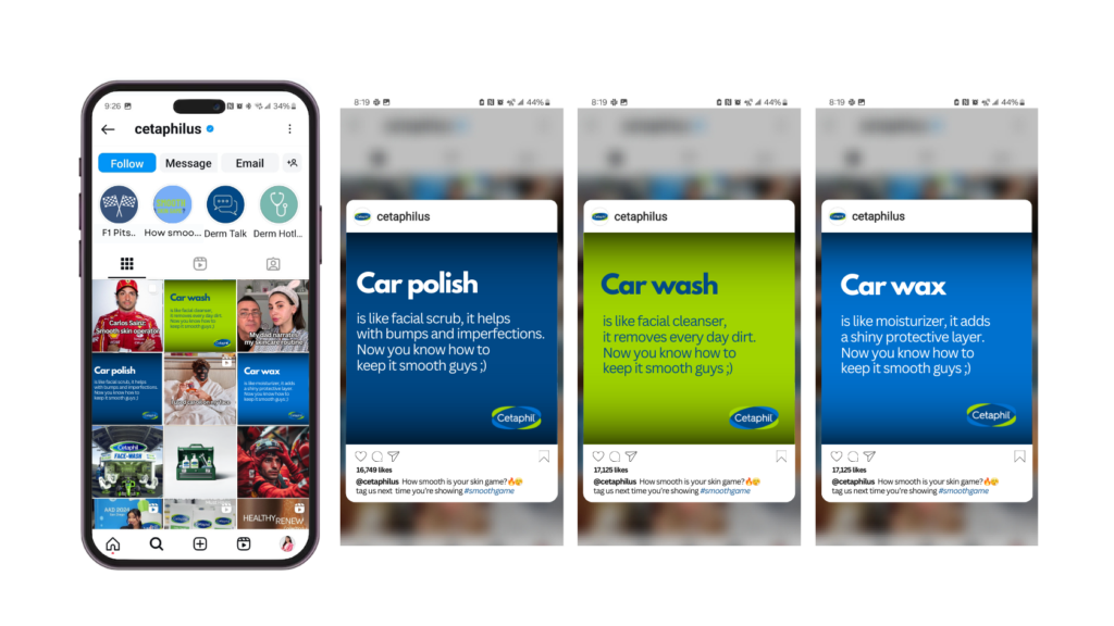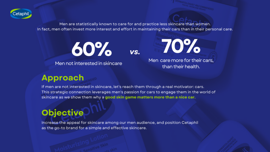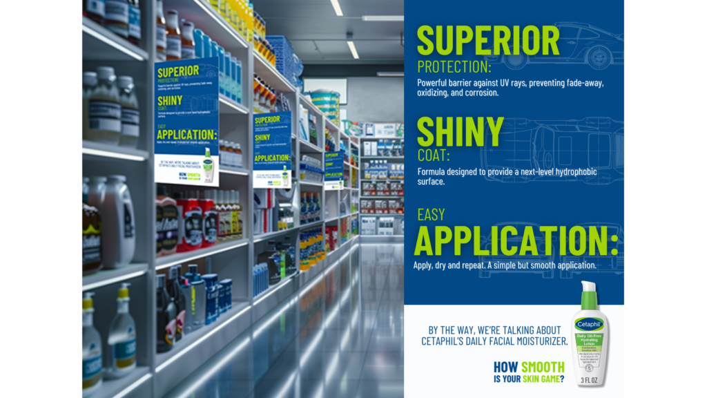 Recognizing that men often bypass the skincare aisle, we’re placing Cetaphil directly in car product aisles, engaging them where they shop most.
