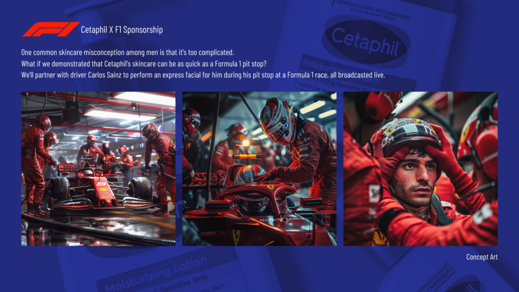 We’re transforming classic car washes into face-wash pop-ups, where Cetaphil professionals dressed as mechanics provide refreshing facials and expert advice. Positioned at the exits of male-centric events like sports games, F1 races, and gyms, they offer an irresistible, refreshing stop for attendees.